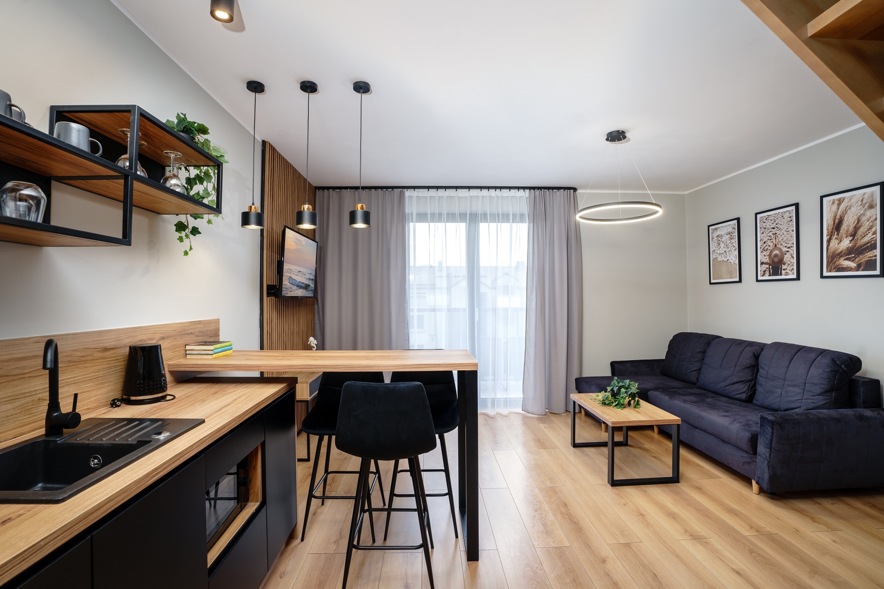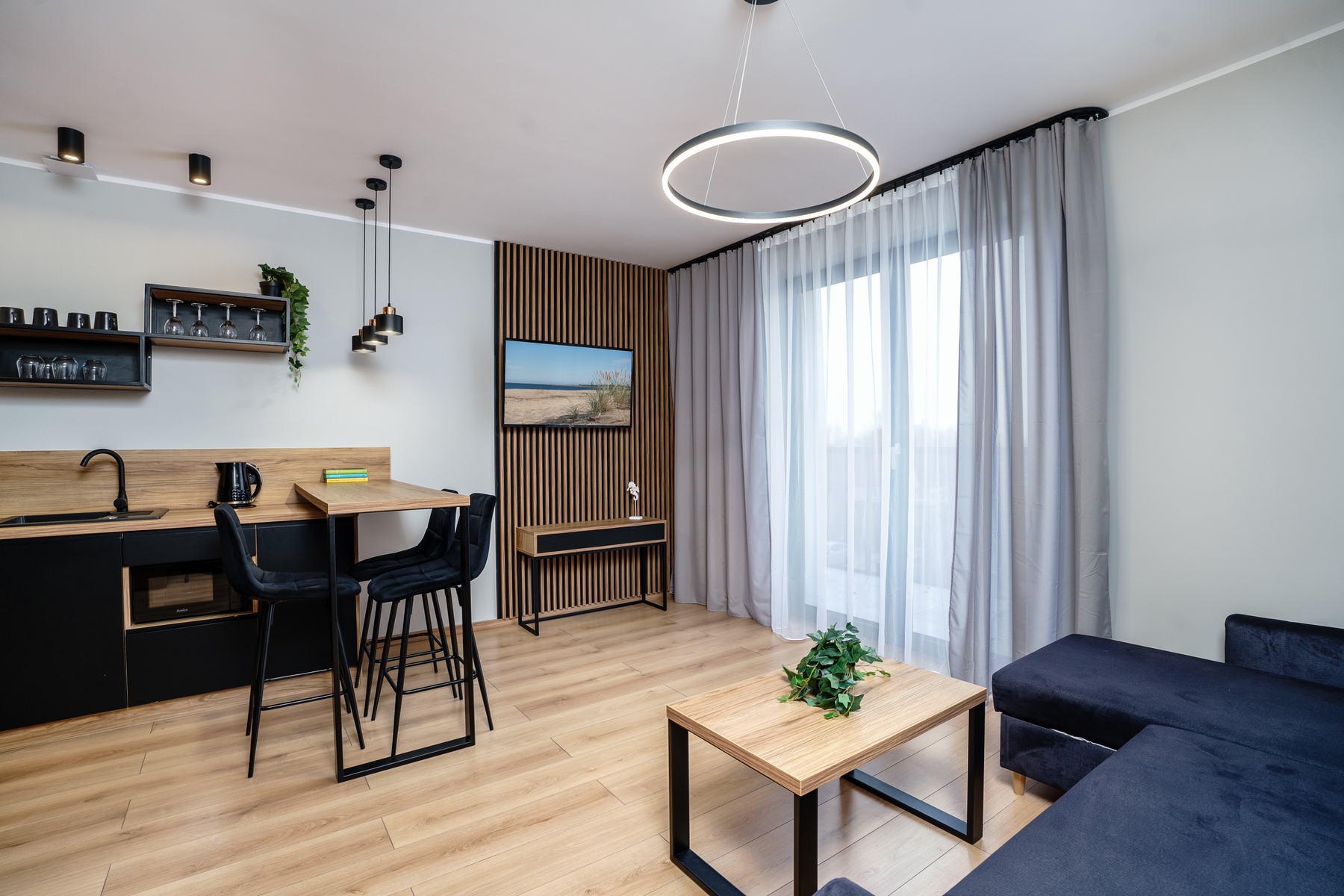 Salon z kuchnią i jadalnią, sypialnia, łazienka
